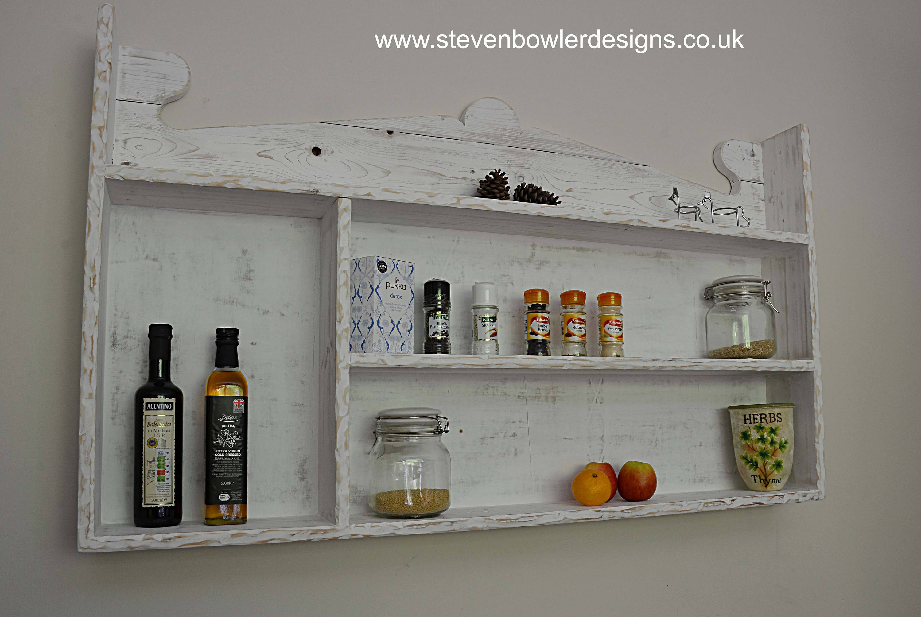 Bespoke Coastal Cottage Reclaimed Wood Kitchen Shelving Unit With Decorative Rustic Edging Driftwood Effect Finish Handcrafted To Order