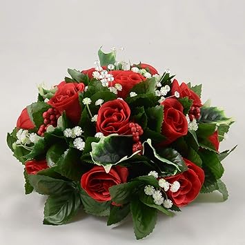 Silk Wedding Flowers Hand Made By Petals Polly Christmas Table Arrangement Red Roses Holly